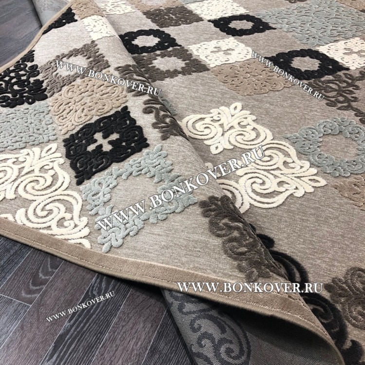 Ковер для Гостиной из Артшелка Дизайн 07 Бежево-Коричневый станет идеальным дополнением интерьера, оформленного в современном или классическом стиле. Мягкое, но прочное, ковровое покрытие обеспечивает тепло- и шумоизоляцию, отличается длительным сроком эксплуатации, пожаробезопасностью, экологичностью и высокой износостойкостью, является отличной гарантией от повышенной влажности в помещении и утеплителем для холодного пола. Благодаря качеству материалов, ковер не деформируется, сохраняет форму под тяжестью предметов мебели. За его поверхностью легко ухаживать.