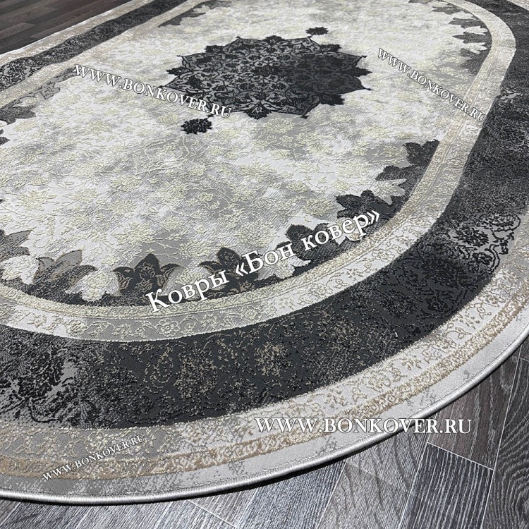 Ковер Турция Для Гостиной 39 Серый овал станет стильным преображением вашей комнаты, подчеркивая высокий статус хозяина.